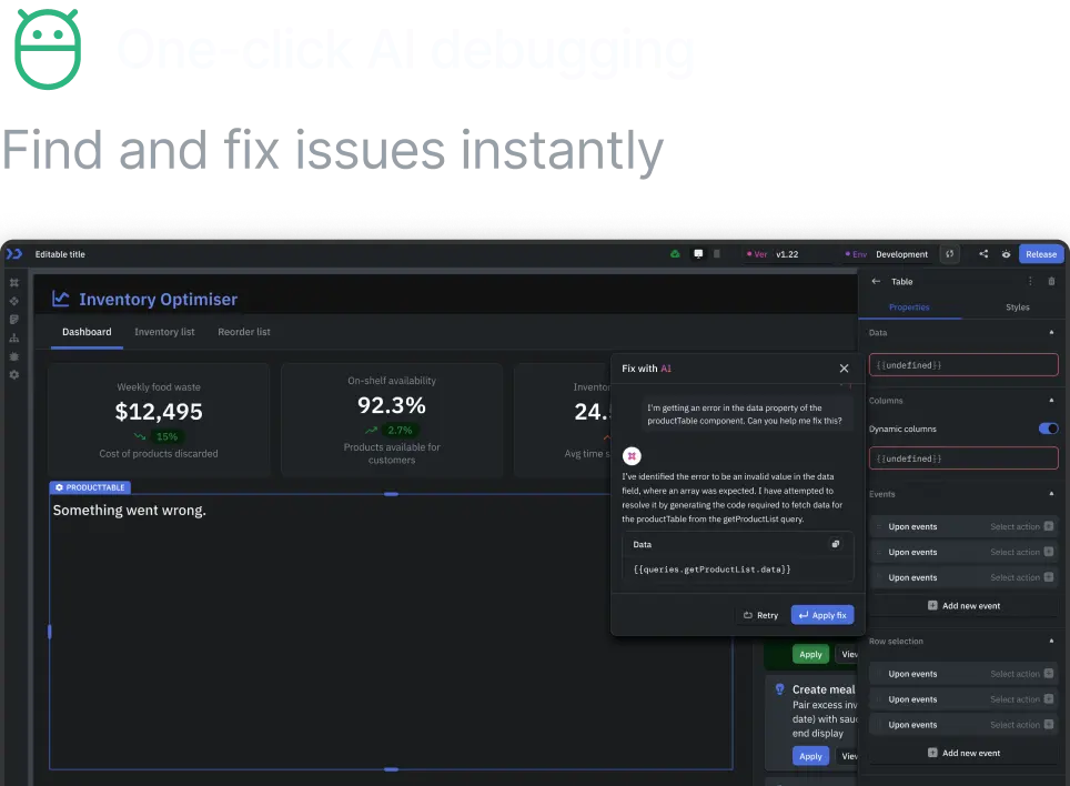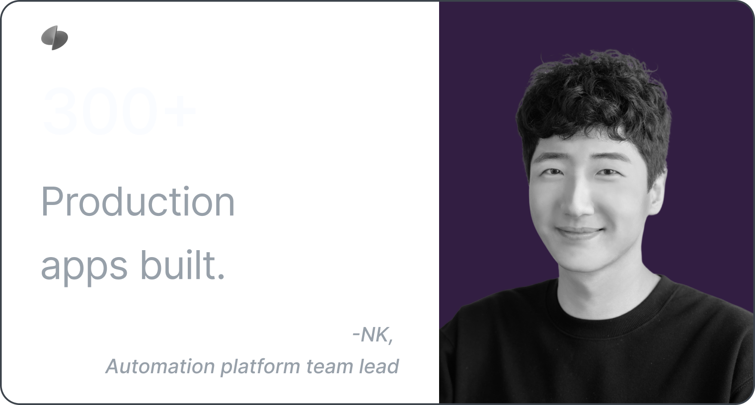 "We were able to take our first app from concept to production in under two months with ToolJet. The platform is easy to adopt, scales with our usage, and it’s helped us build faster and operate more efficiently. And the icing on the cake, the support team. It has been incredibly responsive and willing to help us build and integrate our user friendly apps"