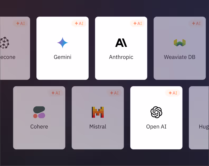 Accelerate workflows with AI models like OpenAI, Gemini, and Anthropic. Generate text, analyze docs, & extract insights in your apps using a unified, no-code interface.
