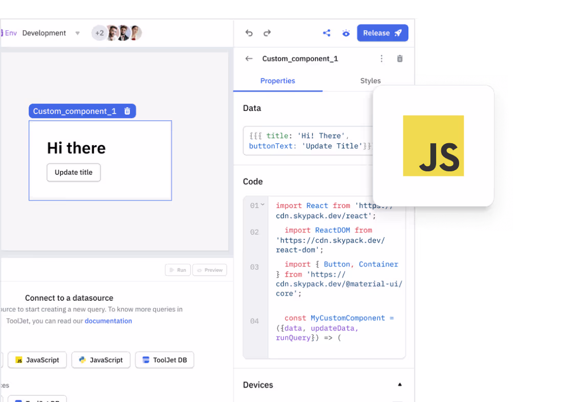 ToolJet is an open-source, low-code platform that enables developers to build, automate, and deploy applications rapidly. It combines drag-and-drop simplicity with the flexibility of custom code, making it ideal for creating scalable, production-ready tools.